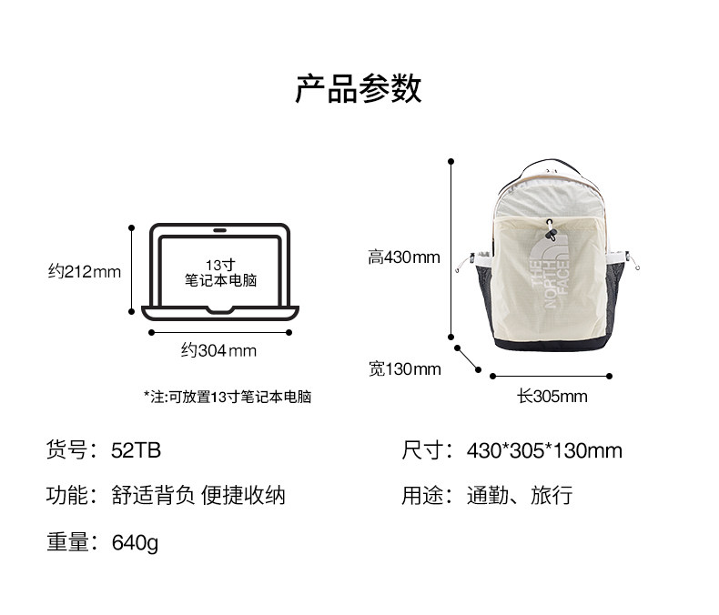 北面19L双肩背包男女同款舒适背负通勤旅行户外TheNorthFace|52TB
