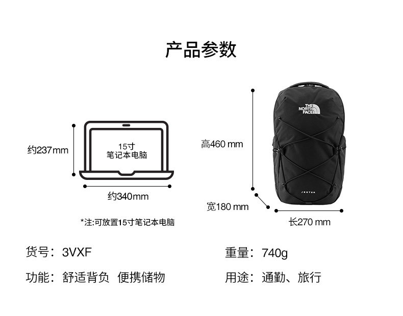 北面Jester 28L双肩背包男女同款休闲户外徒步TheNorthFace|3VXF